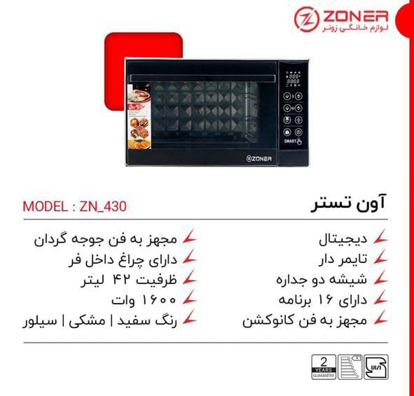 رنگسفيد مشکی سیلورمشخصات محصولدیجیتال ، تایمر دار ، شیشه دوجه داره ، مجهز به ۱۶ برنامه ،مجهز به فن کانوکشن و جوجه گردان و 1600 واتظرفیت42 لیتر